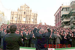 【中新社澳门十二月九日电】回归特写:相聚大三巴,向澳门告别 中新社记者 田惠明 王晓晖 因为即将来到的别离,澳门总督韦奇立和澳葡政府的全体官员今日下午,夕阳之时相聚在大三巴。 大三巴有三百多年历史,其间曾三次被火灾袭击,而後,残留的一片前壁被修复保留至今。 今天,在大三巴前的七十级台阶上,在夕阳余晖之下,站满了澳葡政府五百多名官员。葡萄牙驻澳门的最後一位总督韦奇立站在了最前排。这是一张最後的“全家福”。 上百名记者记录下这一历史镜头。合影之後,韦奇立回身,向和他共事了八年的官员们做了一个很特别的手势:双手高举,并竖起了大拇指。他的手势引起一片掌声。然後,韦奇立先生拾级而上,走过他下属的身边,走向举目可见的大炮台。 三个月前,何厚铧先生在大三巴前放飞白鸽。那是一九九九年九月九日,澳门各界迎回归倒计时一百天系列活动拉开序幕。今天,韦奇立先生在大三巴前微笑留影,标志着澳葡政府告别仪式正式展开。 据知,在今後十一天中,澳葡政府还有一系列告别活动。向大三巴告别,向大炮台告别,向澳葡政府官员告别,是韦奇立先生告别澳门,告别这一段历史的第一次挥手。 大炮台相距大三巴不远。大炮台的高墙内,榕树依依,绿草茵茵。韦奇立和澳葡政府官员的聚会就在这里举行。韦奇立的巨幅照片做成的标志牌立在聚会会场的门囗,草坪上,军乐队的进行曲正奏得激越。 这时,有媒体记者要求采访韦奇立,但韦奇立摆摆手,拒绝了他。然後又似乎想起什么,回过头,向那位记者歉然地微笑了一下。 韦奇立先生的表情模糊,显然心绪复杂,他在澳门黄昏的美丽中说:今天,是对澳门过去的总结,将要来临的是一个新时代。他还提到何厚铧,称他年轻能干,是澳门人的骄傲,会继续推进澳门的进步。 澳葡政府行政及公职司李丽如女士代表澳葡政府官员讲话,她说澳门公共行政的所有领导及主管公认总督先生是一位卓越的政治家。 她说,因为他的领导才能十分卓越,并懂得如何排除万难,把澳门这叶扁舟顺利驶向目的之港。 回归日近的澳门,满眼开的都是荷花,到处飞的都是燕子,回归的字样岁处可见。天气预报显示:澳门天气晴好,一片阳光灿烂。(完) |